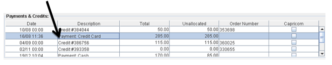 Click the invoice number from the BILLS & REFUND column from the top then click the payment from PAYMENTS & CREDIT column below
