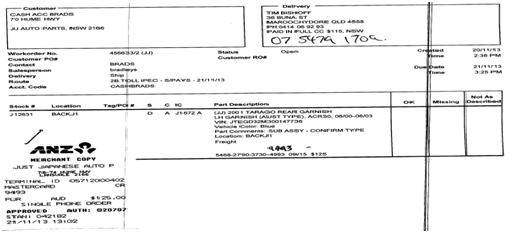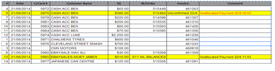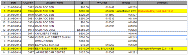 Ø Compare the total of the credit cards to the Banking list sent from car support. If the amount doesn’t match, double check the amounts of the dockets and and if still doesn't match send an email to shipping@jjautoparts.com.au asking why this amount doesn't match and ask them to recheck it before allocating the payments into pinnacle.