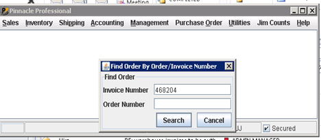 · Open invoice in Pinnacle – F5