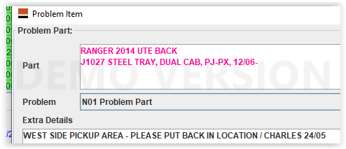 -PUT PART @ OPERATIONS DESK WITH PAPER ADVISING ISSUE