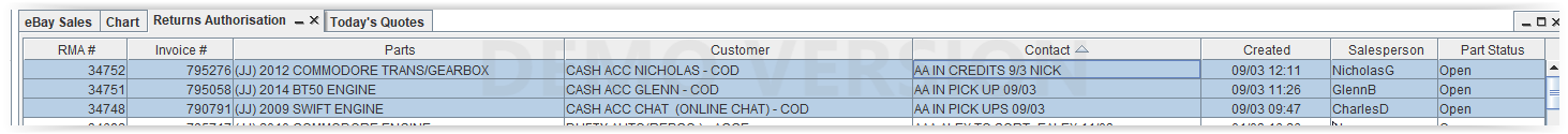 Once invoice has been confirmed ok to credit , restock part to to credit (days abbreviation)