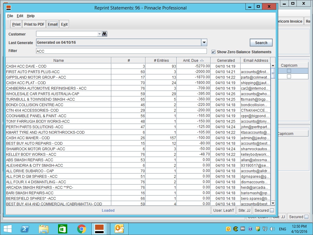 Ø If email address is already edited in customer screen go back to the Reprint Statement and send the statement to those customers that you edited already.