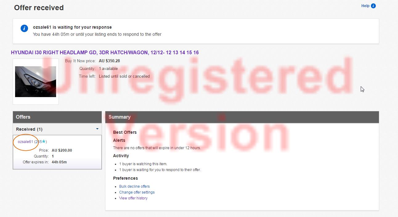 As you may be aware, Ebay currently has an issue where we cannot respond to offers made on our But It Now items.