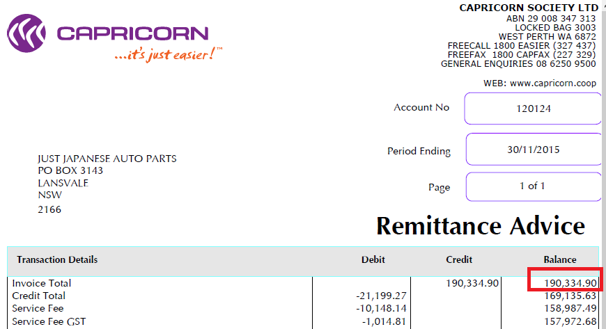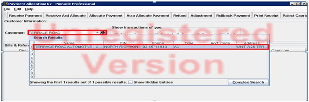 In the Customer tab, enter the name of Capricorn member, in this case it’s TERRACE ROAD AUTOMOTIVE