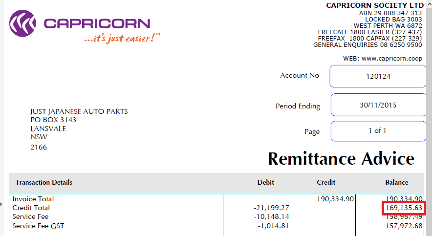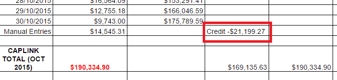 In Remittance Credits column this was the credit for the whole month in Caplink report including the credit in manual entries that you have entered. This is the total credit amount that you have recorded.