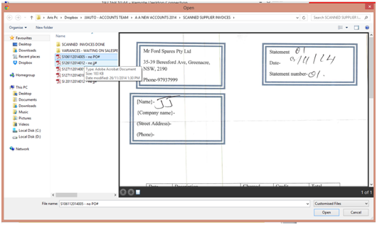 Take a note for P.O# & invoice number ( if no p.o number supplied see guide at bottom of doc