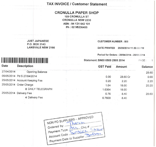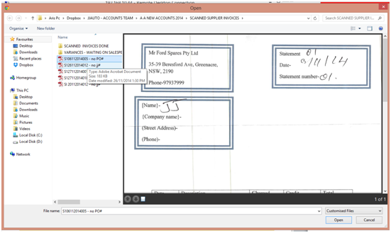 Ø Open up Non PO file and view suppliers with adobe reader ,typical invoice copy is below