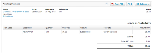- Tax Rate– GST on Expenses