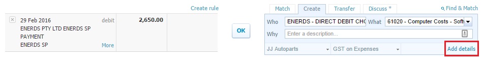 Details to enter in XERO