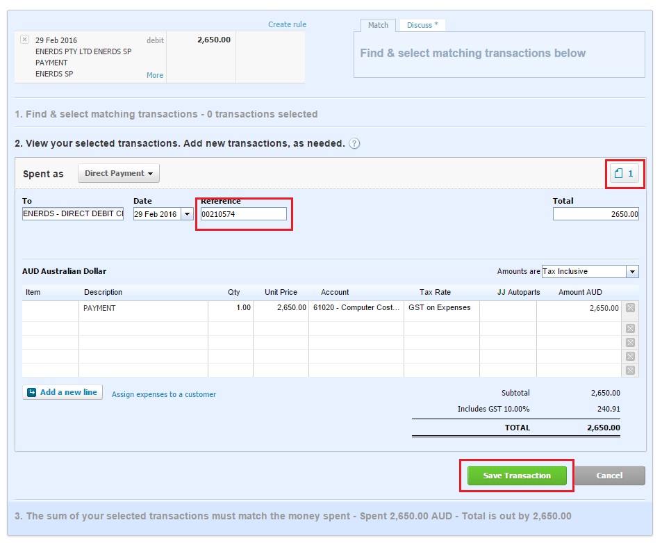 The amount will appear as DEBIT under Xero Cheque Reconcile page.