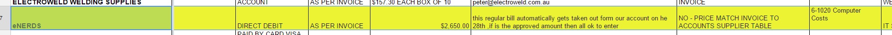 NOTE: for invoices that are on DIRECT DEBIT, when making a payment, make sure to change the payment date to the DUE DATE on the bill. That means the money will come out of our account and it needs to match the payment date.