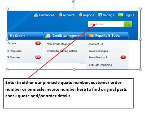 In the search box enter in the pinnacle qupte number or order number or even customers order number to find original