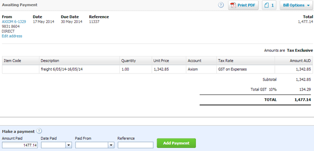 NOTE: when entering in xero we need to ALWAYS make sure the freight charge is recorded for the month the freight was completed.
