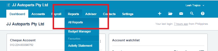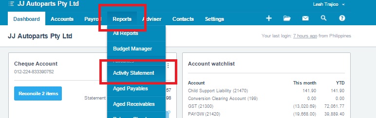In Xero, go to REPORTS - ACTIVITY STATEMENT