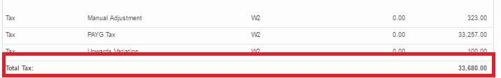 e.g YOUR PAYMENT $102.916 + TOTAL TAX $33,680 = APPROXIMATE QUARTERLY BAS AMOUNT