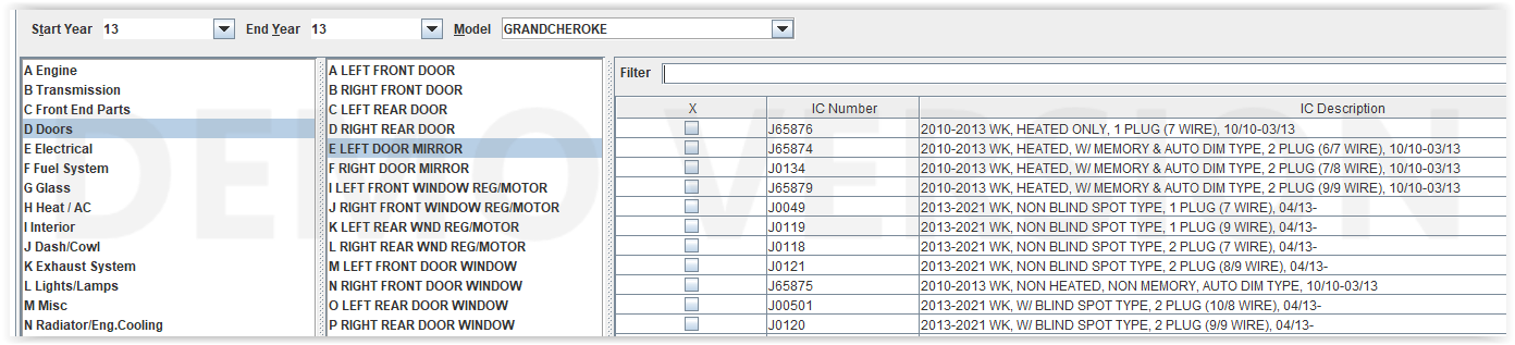 ie. 2013 grand Cherokee door mirror