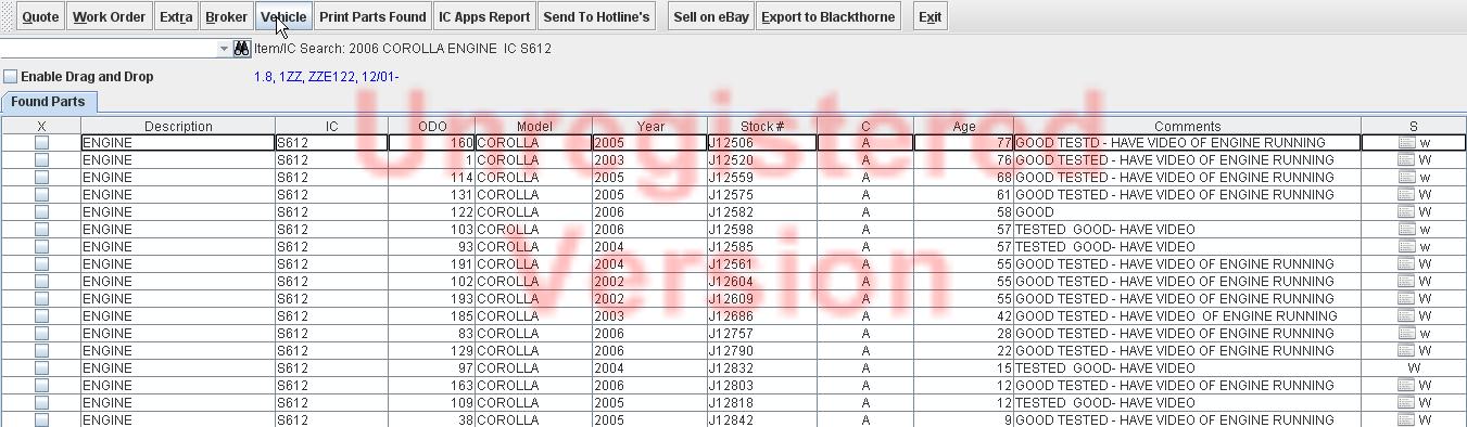 E.g. 2) Modify parts screen (if you know the stock number of the item)