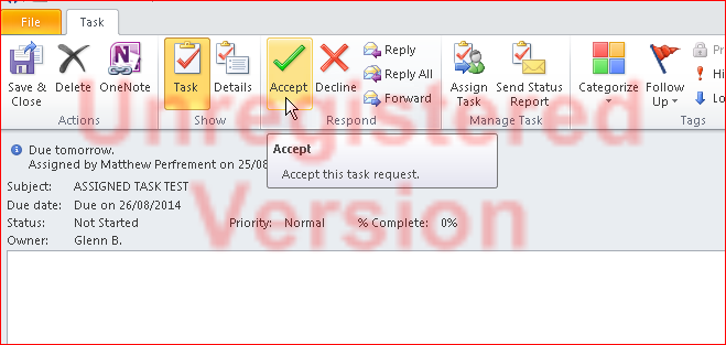 If the recipient accepts the task, that person becomes its permanent owner. If that person later assigns the task to someone else, the new assignee becomes the owner. The owner is the only person who can make changes to the task. When an owner updates a task, Microsoft Outlook updates all copies of the task — the copy with the person who originally sent the task request, and all copies with all other prior owners of the task. When the owner completes the task, Outlook automatically sends a status report to the person who originally assigned the task, all other prior owners, and anyone else who requested a report.