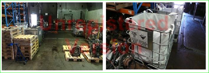 CLEANING BAY2 MAKE SURE TO EMPTY BIN AND MOVE ENGINE/GEARBOX THAT HAVE BEEN STRAPPED TO SKID TO LOADING BAY ALSO MOVE EMPTY SKIDS PUT ASIDE UNTILL CLEAN UP IS FINISHED – CORE CRATES AND ENG/GEARBOX TO BE SEPARATED JUST LEAVE AND CLEAN AROUND THEM PIC BELOW (PIC BELOW)