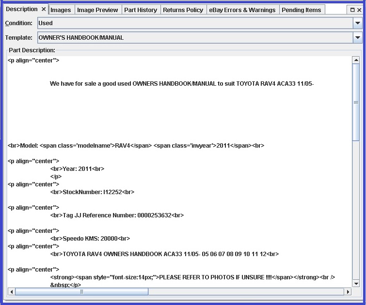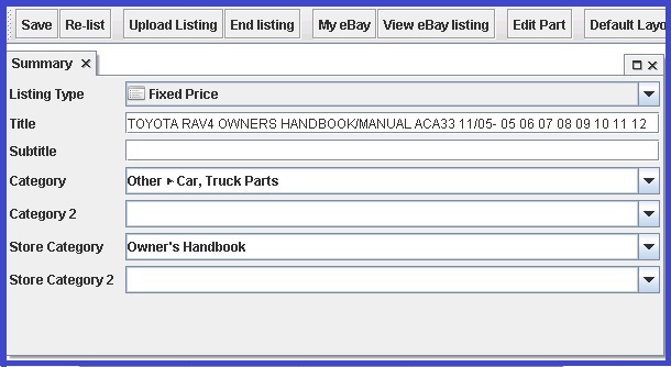 EBAY LISTING GUIDE FOR OWNER'S HANDBOOK/MANUAL