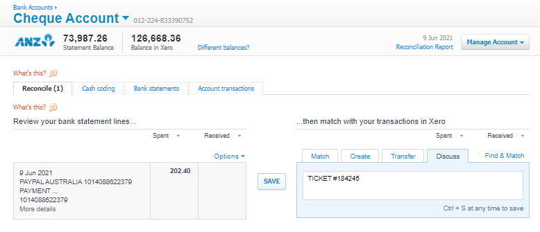 and add the ticket number in the Xero transaction