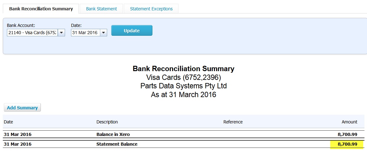 *As credit card statements generally do not provide a running balance, there is some extra steps to be taken to obtain the closing balance as at 31 March 2016.