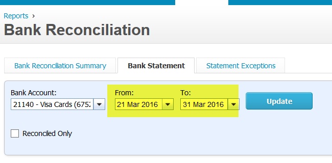 Click on the Bank Statement tab and update the date range from the Opening Balance date to the end of March: