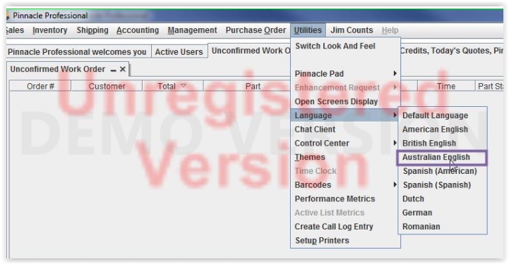 rom Pinnacle home screen go to Utilities > Language > Australian English