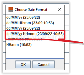 Then on pop-up, select the dd/MM/yy HH:mm then click OK