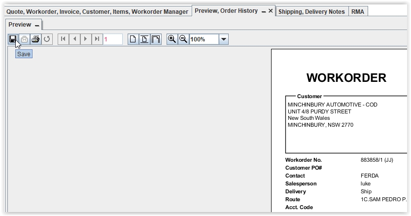 preview the quote/invoice/work order
