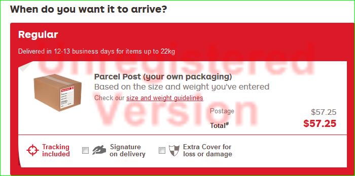 For the example shown below we will tell the customer "The total cost for shipping the (part) to (postcode) will be $57.25"