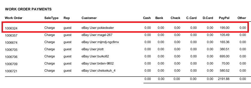 Transactions in column C - Go to Workorder Payments page