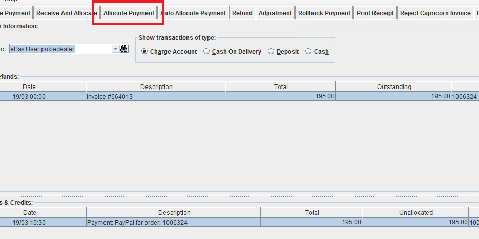 NOTE: YOU CAN ONLY ALLOCATE PAYMENTS IF THE WORKORDER HAS TURNED INTO INVOICE
