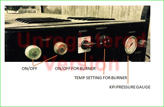 -- RUN STEAM CLEANER WITH PRESSURE MAKE SURE THAT BURNER AND PUMP ARE WORKING GOOD ALSO PRESSURE LEVELS SHOULD NOT EXCEED 2000 KPI DO A PRE CHECK BEFORE STARTING SERVICE TO MAKE SURE STEAM CLEANER IS WORKING GOOD BEFORE MAINTENANCE